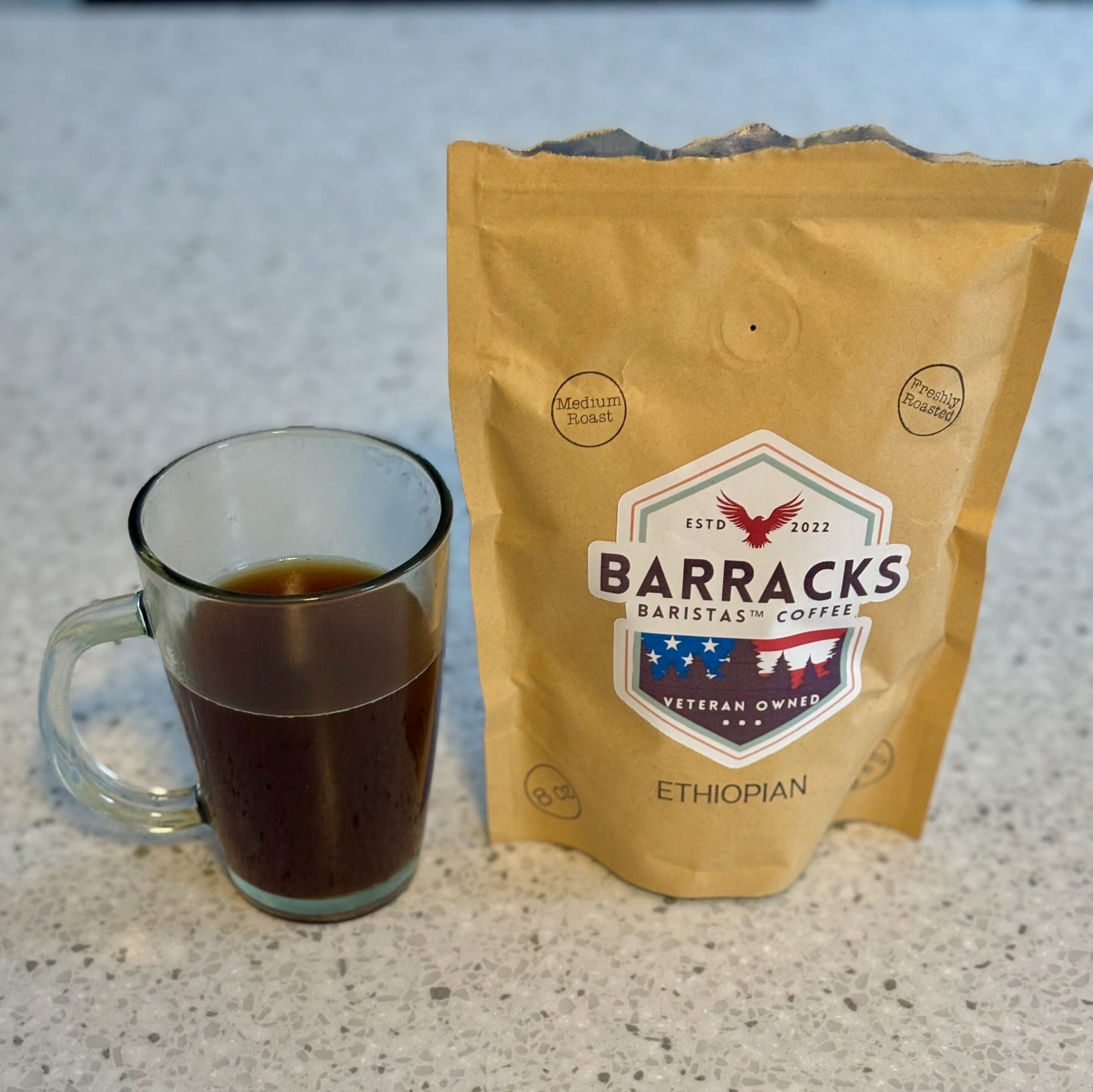 As you may recall from my review of their Hero’s Brew (read my review here), Barracks Baristas is owned and operated by two really great guys who are also active duty military members. Their Hero’s Brew was a great take on a Colombian roast, so will American Valor, their Ethiopian roast, live up to these lofty standards? Let’s find out!