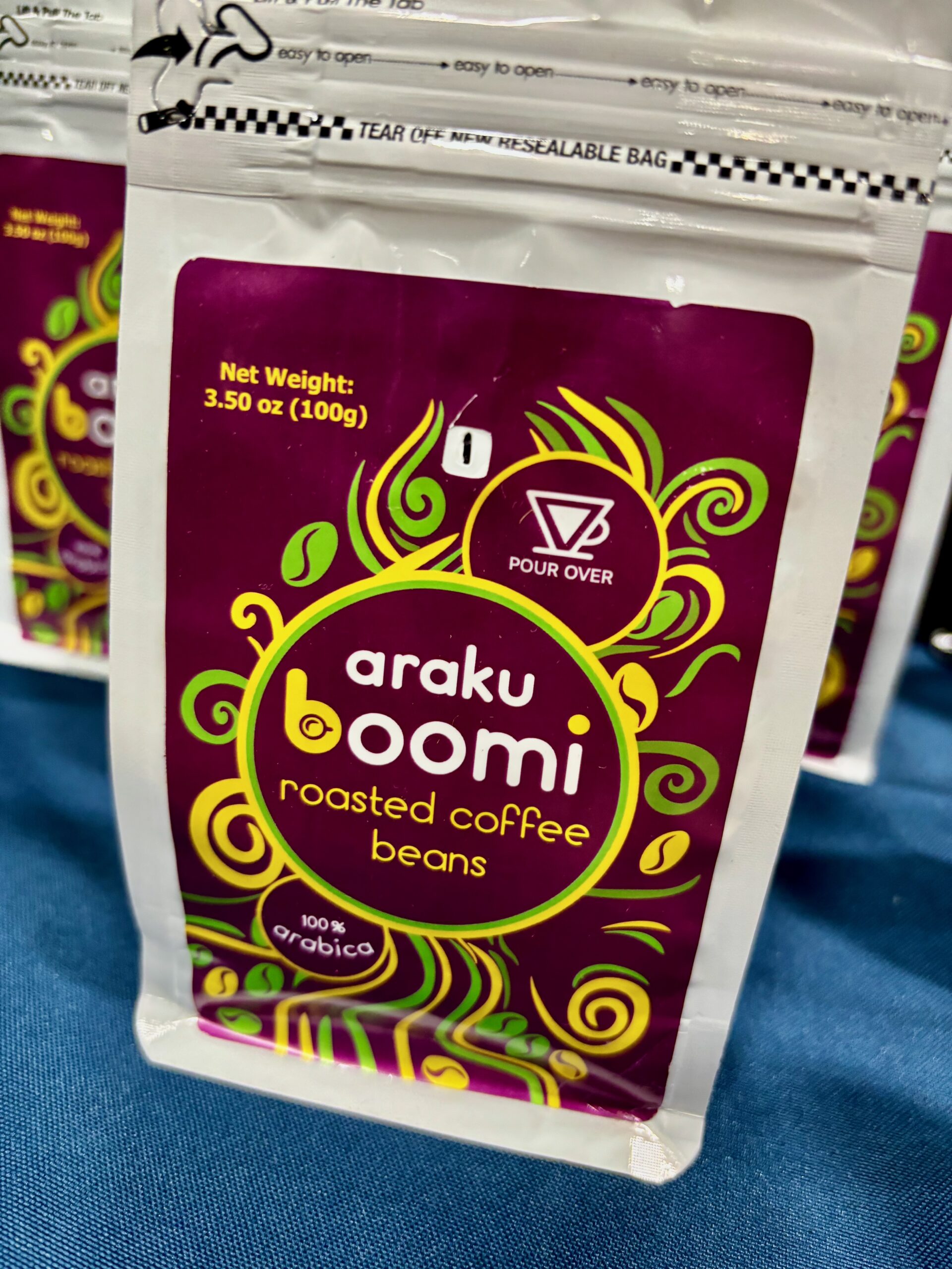A bag of Boomi Araku whole beans, which can be tough to find!
