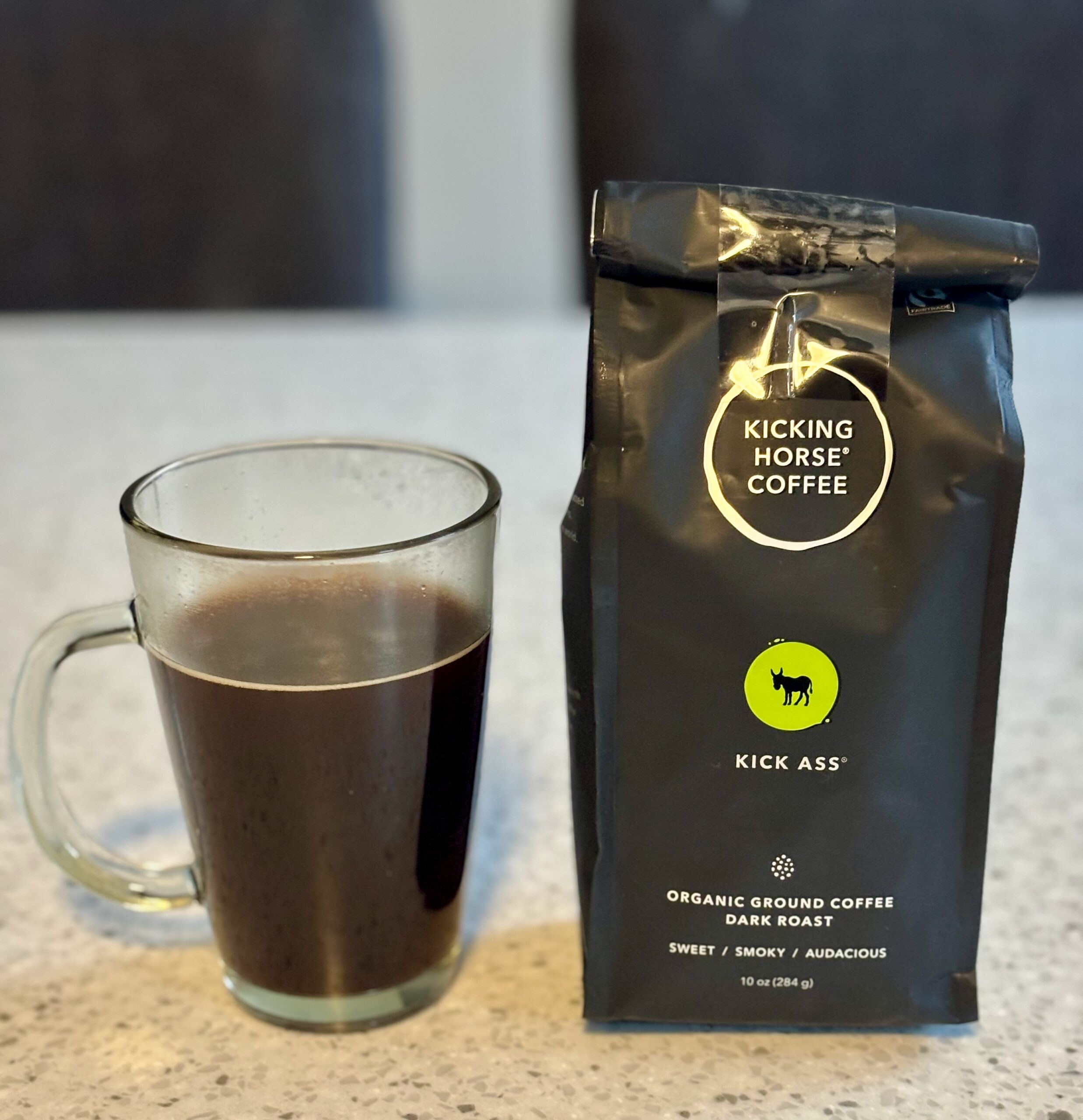 How’s it going? Hope the coffee is flowing! After a brief canned cold brew break, today we are going back to the French Press with a review of Kicking Horse’s (explicit language alert) Kick Ass Blend Coffee.