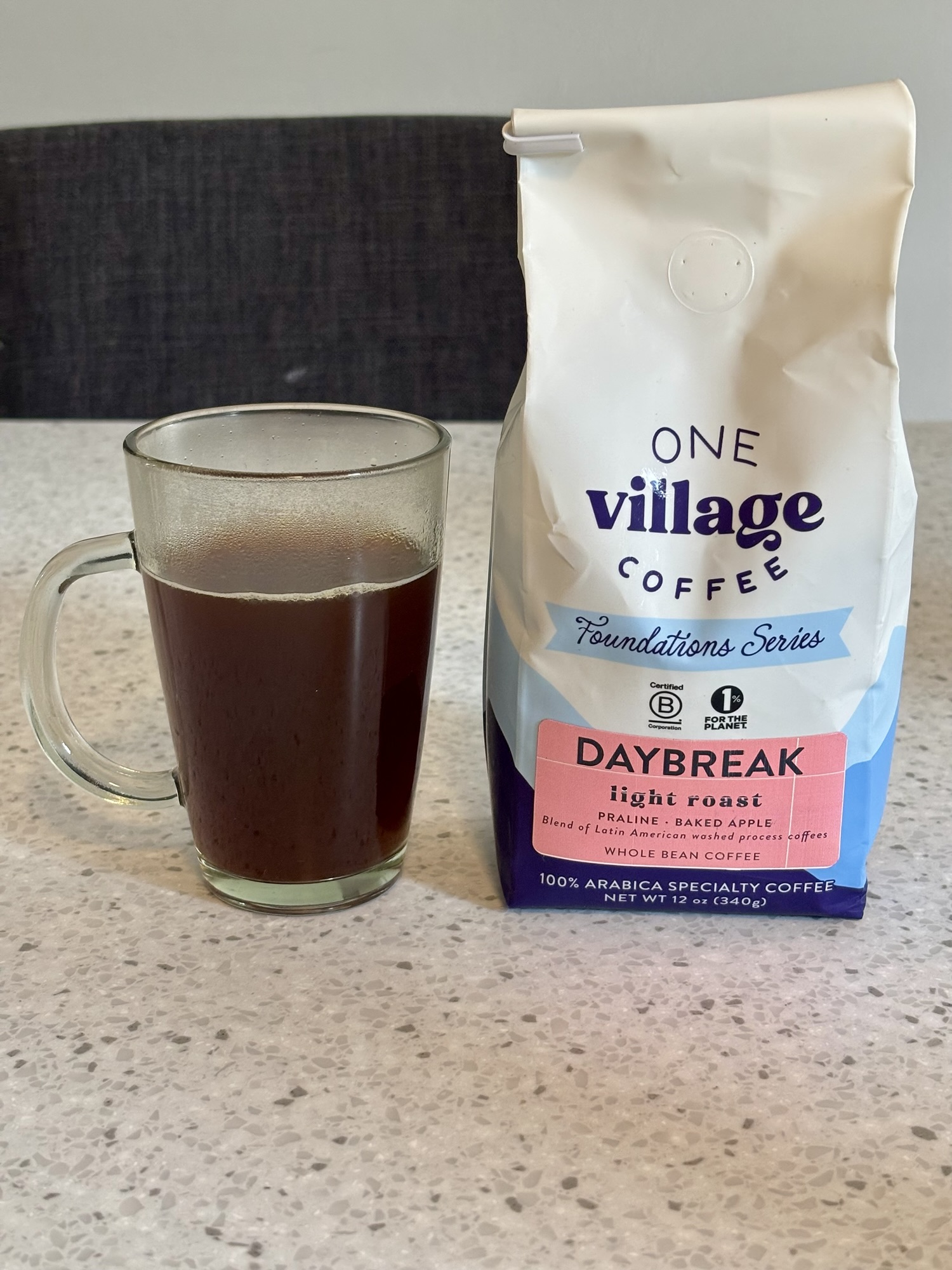 How’s it going? Hope the coffee is flowing! Today, I’m kicking off the first of three coffee reviews this week. That’s right—three days of coffee reviews in a row. Why, you ask? Because this week, I’m diving into a trio of coffees called the Foundations Series by One Village Coffee. In my French Press today I have their Daybreak Blend.