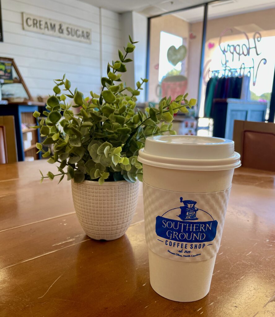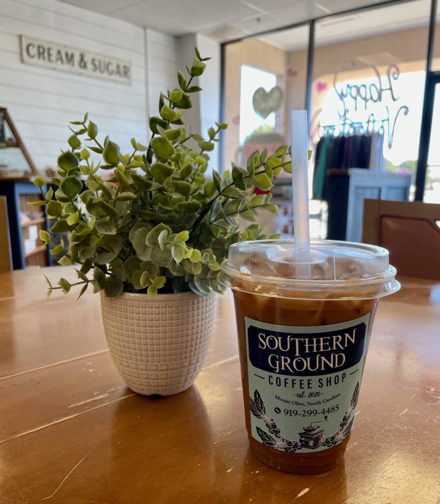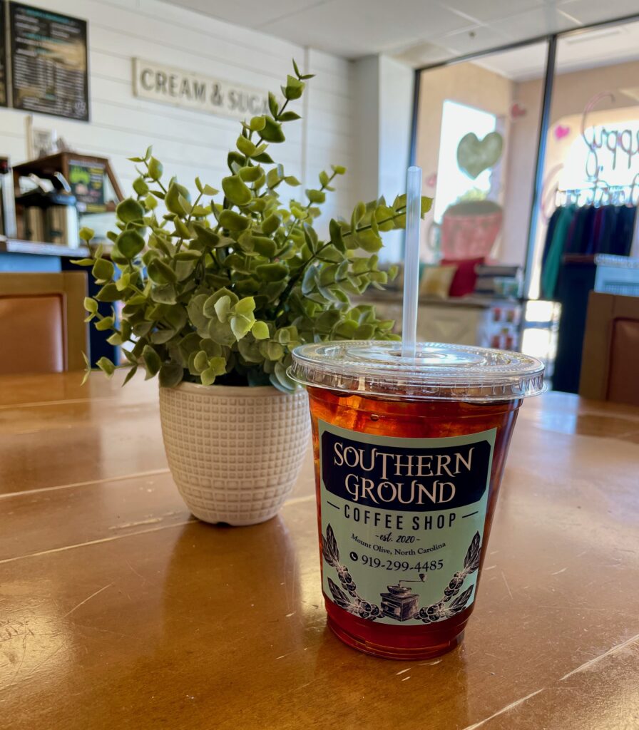 Southern Ground opened in 2020 after the shop owners realized there was nowhere in Mount Olive to get a quality cup of coffee in an engaging and comfortable space. They offer an expansive menu of drinks and we were able to try 5 of them. Their menu features core drinks they offer everyday and then seasonal offerings that rotate regularly. They also roast their coffee in house and you can purchase it online. As I mentioned in my review of their Morning Blend (read my review here) you can get a half pound of their coffee for $7 and a full pound for $14, with free shipping for most orders. Not a bad deal at all!