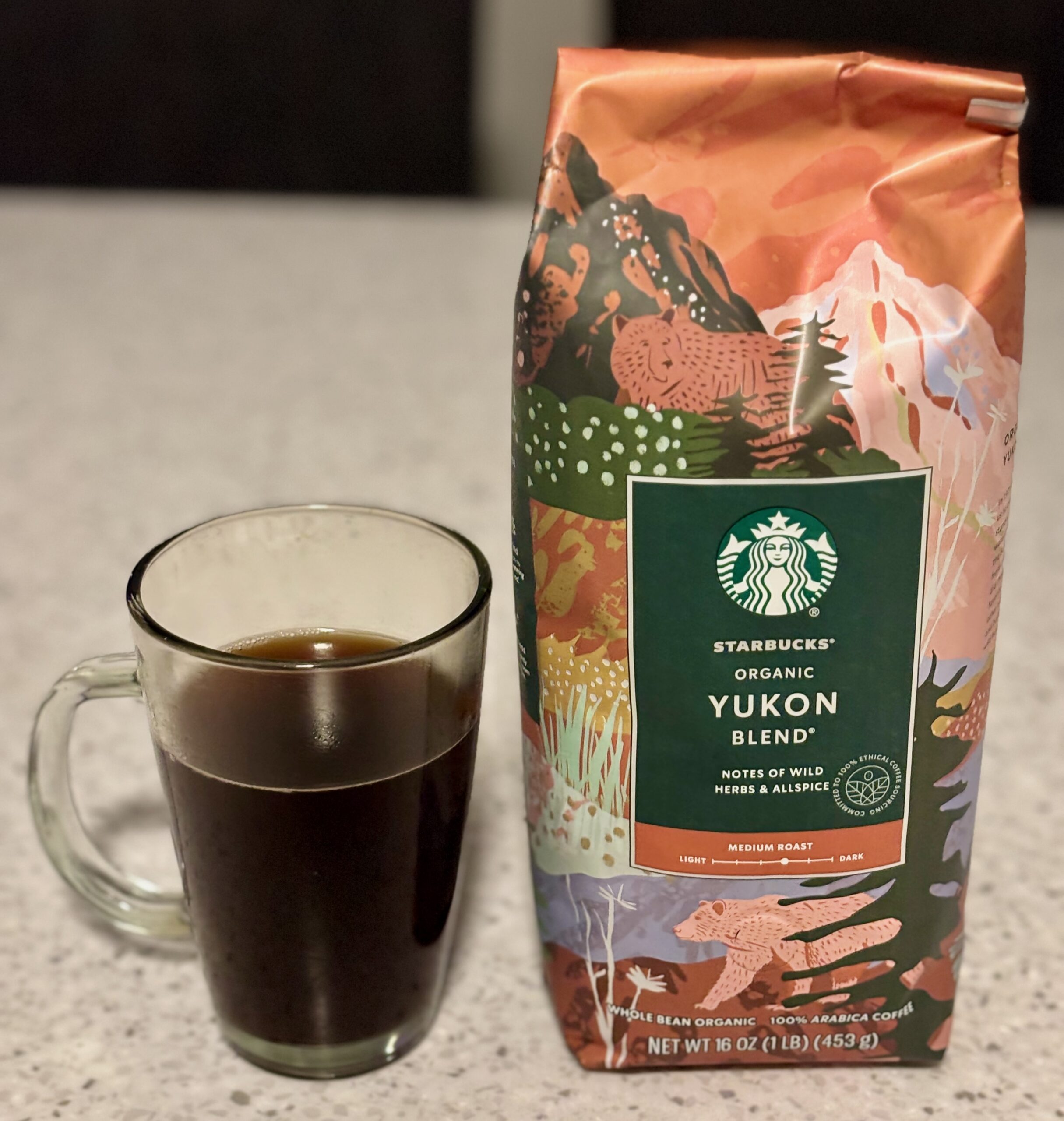 I am not a Starbucks fan, but due to an abundance of gift cards I have been stopping into their stores a little more frequently than usual. During my last trip to grab some coffee with a friend I noticed the Organic Yukon Blend and I will admit the marketing on the bag got me. It is marketed as a hearty roast for camping and outdoor activities with bold herbs and spiciness, it immediately piqued my interest as a potentially interesting blend to try. Could this be my new go to blend on the rare case I am buying a bag of coffee from Starbucks? Let’s find out!
