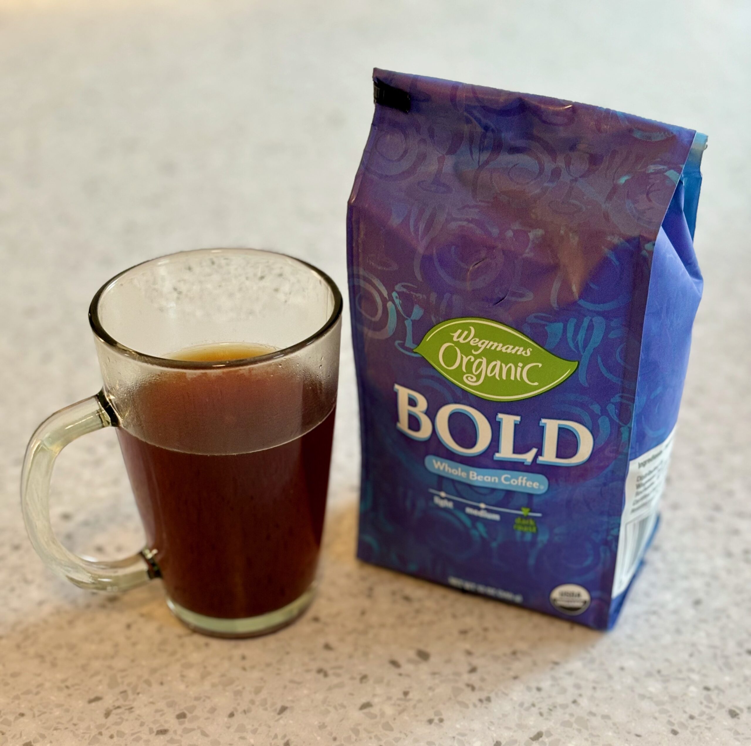 Wegmans Organic Bold Dark Roast coffee always catches my eye when I browse the coffee section in their stores. There is nothing about the packaging or anything that causes this, it is simply because at $7.49 for 12 ounces it is actually cheaper than most of their non-organic coffee. What’s going on with the pricing here, is it a low quality coffee that isn’t worth drinking? Let’s find out!